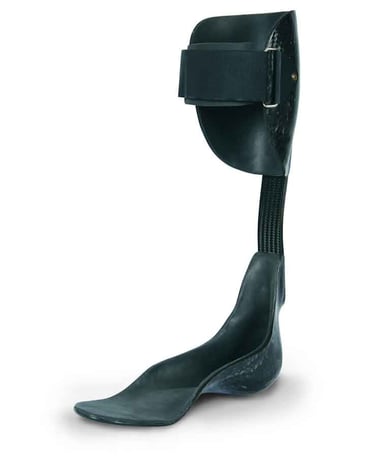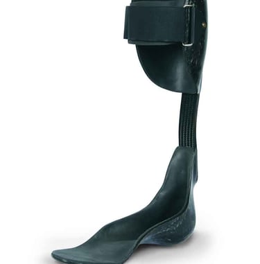 Ortesi dinamica. Rigida alla tibiotarsica sostiene e stabilizza il complesso gamba-piede nei tre piani: frontale, sagittale e trasversale.