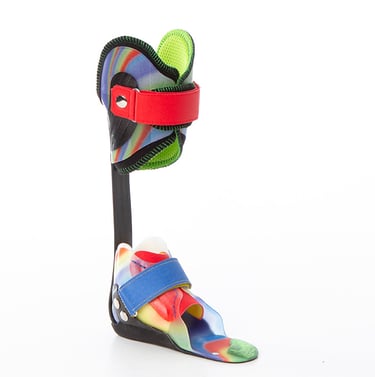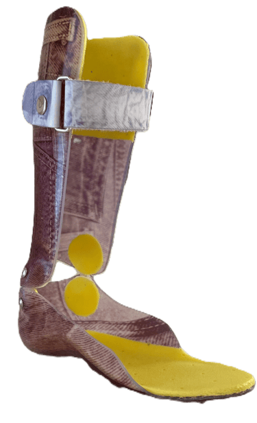 Ortesi dinamica. Rigida alla tibiotarsica sostiene e stabilizza il complesso gamba-piede nei tre piani: frontale, sagittale e trasversale.