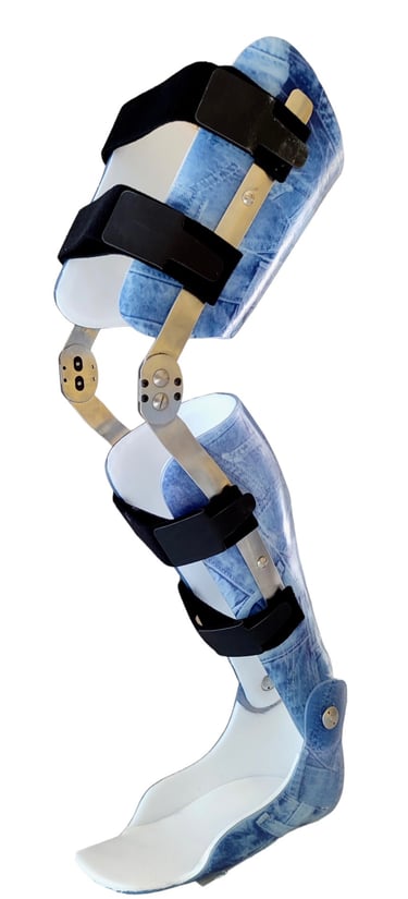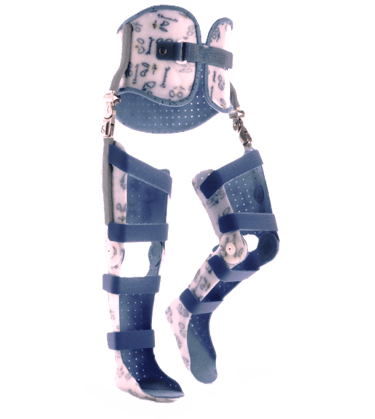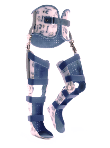 Le ortesi KAFO si sviluppano a partire dalla radice o dalla base della coscia, e interessano ginocchio, gamba, caviglia e piede al fine di prevenire, contenere e correggere l’arto inferiore, eventualmente scaricandolo dal peso corporeo.